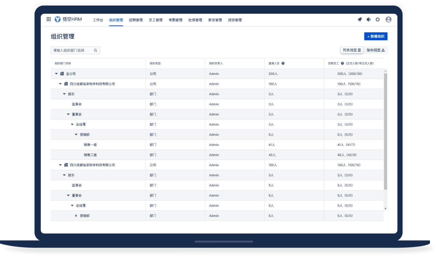 企業組織架構適配、多樣企業角色構建、靈活省級組織架構等,支持各個行業、各個規模的企業組織員工信息全生命周期管理。
